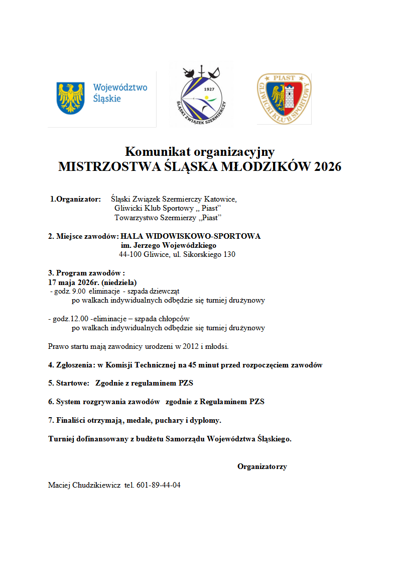 Więcej artykułów… III Puchar Polski Juniorów Młodszych - Rybnik 2025 - plakat i komunikat II Puchar Polski Juniorów - komunikat II Puchar Polski Juniorów Młodszych - komunikat I Pichar Polski Juniorów w szpadach - Radlin 2025 - komunikat